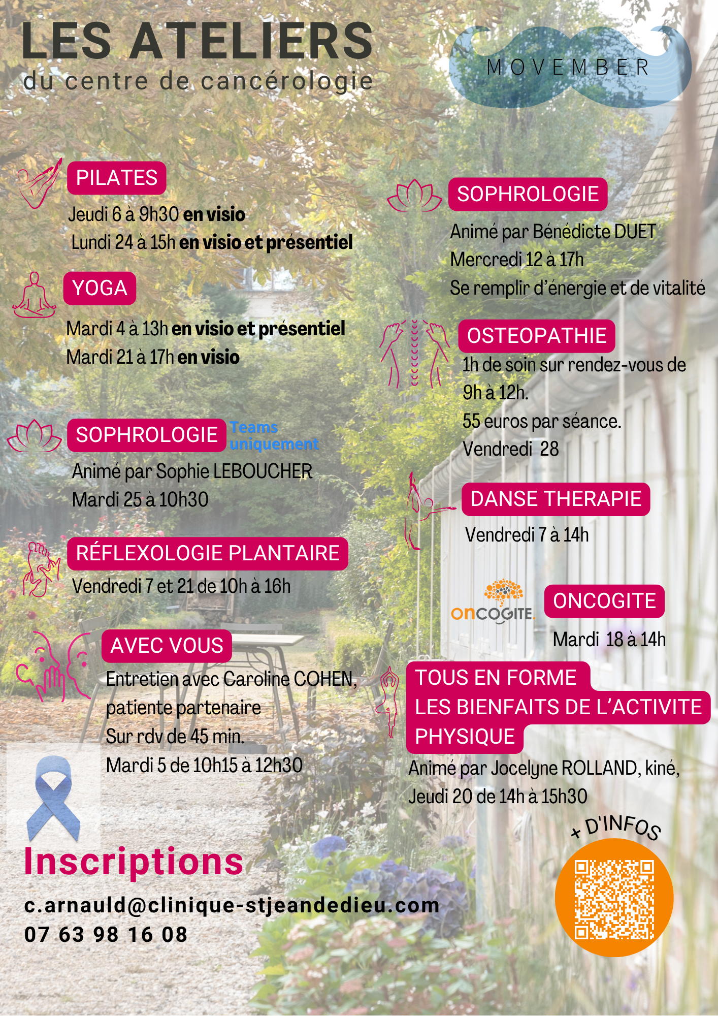 Contactez la coordinatrice : 07 63 98 16 08 ou c.arnauld@clinique-stjeandedieu.com.